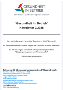 Gesundheit im Betrieb – 15. Newsletter Juni 2025
