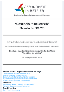 Gesundheit im Betrieb – 11. Newsletter Juni 2024