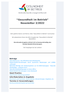 Gesundheit im Betrieb - 3. Newsletter Juni 2022
